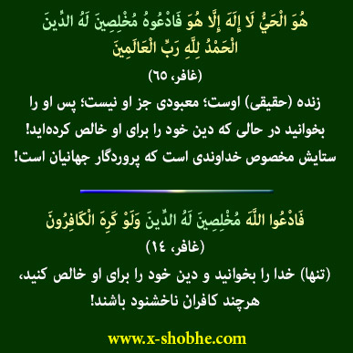 « وَمَا أُمِرُوا إِلَّا لِیَعْبُدُوا اللَّهَ مُخْلِصِینَ لَهُ الدِّینَ حُنَفَاءَ وَیُقِیمُوا الصَّلَاةَ وَیُؤْتُوا الزَّکَاةَ وَذَلِکَ دِینُ الْقَیِّمَةِ » (البینة، 5)
